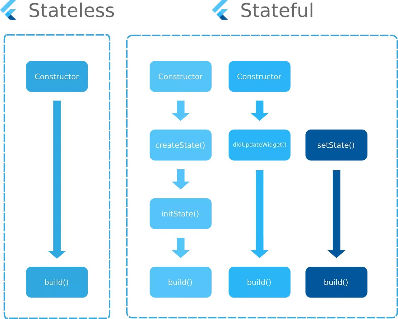 Flutter에서는 상태 관리 방식에 따라 위젯을 두 가지로 분류합니다: